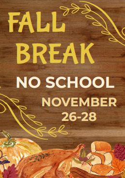 Astoria School District will have no school November 26 - 28, for Fall Break. Students will return on Monday, December 1, 2025.